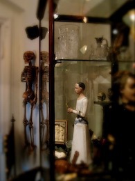 30年以上前に人形への興味から骨董業界に入った店主の美意識で厳選した作品は独特な表情と存在感を放ち、それらを過剰なまでの密度で配した店内は、ヨーロッパの異様性とユーモアに満ちた独創空間となっています。