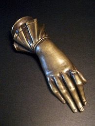 「貴婦人の手首」は19世紀のヨーロッパ芸術におけるセンチメンタリズムを背景に、特にジュエリーの分野で人気の意匠であった。ふっくらとした手の甲、しなやかに伸びた指、優美で柔らかな表情の若い女性の手首は、硬質な金属であることを忘れさせるブロンズ彫刻である。横にしてペーパーウェイトにもできるヴォリュームがある。印面は何も刻まれておらず未使用である。