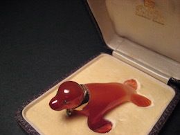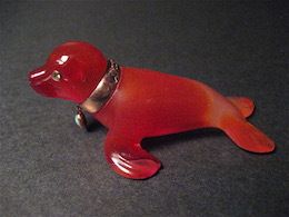 赤琥珀色の瑪瑙で彫刻されたアザラシは、金の首輪の蝶番によって首部分が開く香水瓶である。目にはデマントイドガーネットが嵌められている。