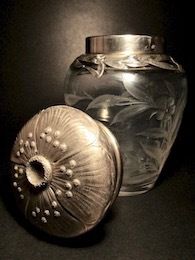 アールヌーヴォー 銀製蓋グラヴュールガラスジャー