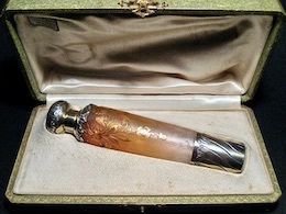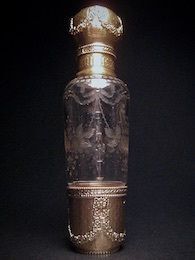 19世紀末アールヌーヴォー期、貴婦人が手提げの中に薬草蒸留酒、主にメリッサ水を忍ばせるためのフラコンである。16世紀ヴェネチアのカルメル会が作り修道会において使用されていたメリッサ水は、薬草の効能としてヒステリーの発作を抑え心をリラックスさせるということで特に女性に好まれた。