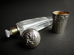 ベルエポック銀/ガラス携帯用薬草蒸留酒入れ