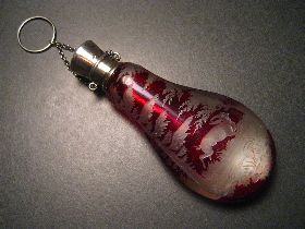Bohemian Ruby Overlay Glass Scent Bottle with Silver Ring & Chain Attachment