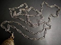 刻みの入ったボールパーツとシャープな切子チェーンの組み合わせが印象的なヴィクトリア時代後期のチェーン。