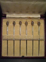 William Hutton & Sons Ld. シルバー 悪魔の頭 カクテルピック6本セット(オリジナルケース入り)