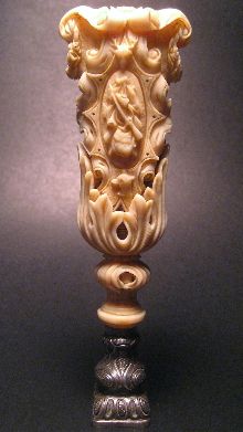牙彫「狩猟と漁の戦利品」ハンドル 銀製デスクシール