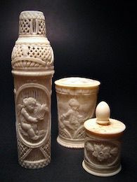 LouisXVI Set of 3 Carved and Pierced Tusk Sewing Accessories