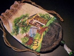 全体的に良好な状態。シルクの内張りは非常に良い状態でタッセルの欠損も無い。片面ずつ違う図柄で極小ビーズを使用。人気の猟師と猟犬パターンは、パターン・ブック(図案集)の普及により19世紀を通じて欧米各国で同じ図柄のバッグが制作された。
