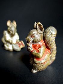 マッチを入れる容器に手を添えた小枝の上のリス。繊細な枝やリスの尾もダメージ無く、エナメルの状態も良い。つやのあるエナメルで仕上げたリスの黒目は光を宿し生き生きしている。