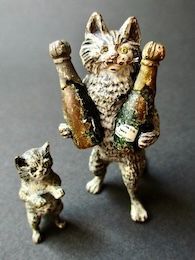 Vienna Bronze Cat Holding 2 Champagne Bottles
