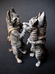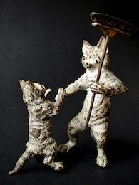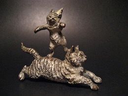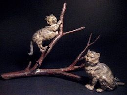 ヴィエナブロンズ 木枝で遊ぶ2匹の猫