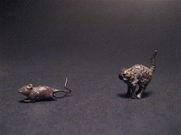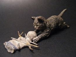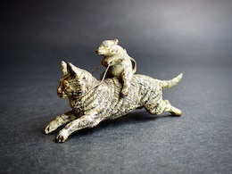 ヴィエナブロンズミニチュア ネズミを追う猫