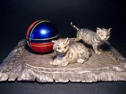 Vienna Bronze 2 Cats and Ball on Carpet Inkwell